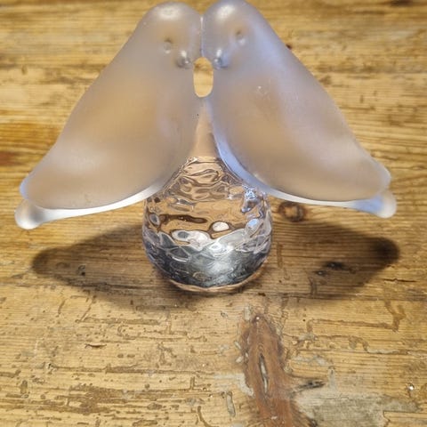 Retro glasophæng med turtelduer, Retro glasophæng, Smukt gammelt håndlavet glasophæng til vindue, væg i stue, værelset eller badeværelset. Forstiller 2 turtelduer. Måler 17 cm x 17 cm. Lovebirds.