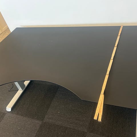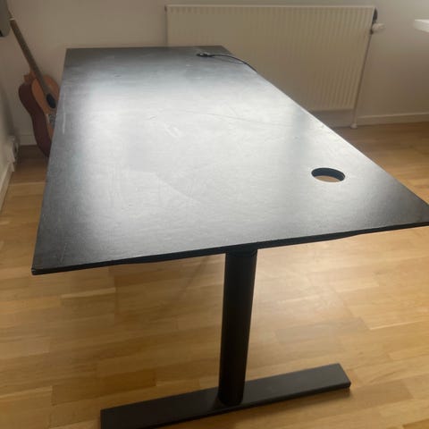 IKEA GLADHÖJDEN skrivebord med hæve/sænke-funktion. Bordet har en bordplade i lysegrå og stel i antracit. Mål ca. 100 x 60 cm. Velegnet som arbejds- eller studieplads i hjemmekontor eller værelse.