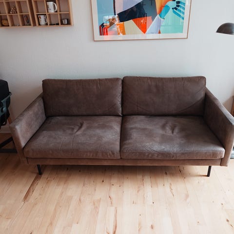Købt i Ilva for 14.000 kr. for sofaen og 3.500 kr. for puffen.
