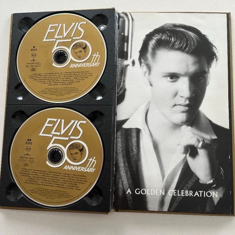 Elvis Presley The Collection CD-boks med flere CD’er samlet i en sort kassette med guldtryk. Udgivet af Sony Music. Boksen indeholder individuelle covers til de enkelte CD’er. Velegnet til samlere af Elvis Presleys musik og til dem, der ønsker en samlet udgivelse i fysisk format.