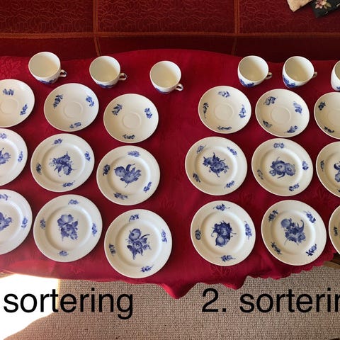 Søgeord: Royal Copenhagen, blå blomst, flettet, porcelæn, kaffestel.
