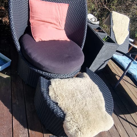 Lounge stol til haven med træarmlæn og hynder