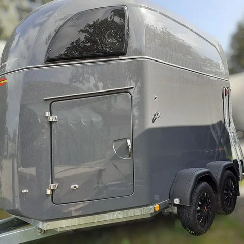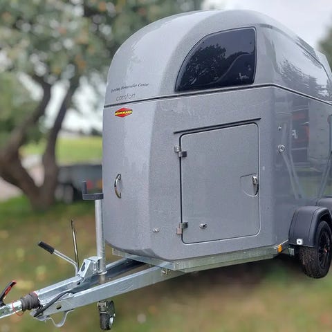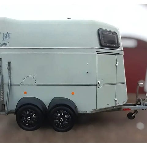 Model: Comfort Esprit Antal dyr: 2 Ekstra udstyr: 1x gummisikkerhedsmåtte på bagrampe med integrerede trin og side-stops 2 x Sort kunststofsparkeplade 4x hjulstøddæmpere Opbygning: CFF plus almindlige aksler Sikkerheds bomsystem justerbar i højde i fronten og længde bagerst Udløses udefra forrest. Presenning rullegardin Sorte enkelte plastikskærme Glasfibertag tag med 2 pop-out vinduer Trin på bagrampe 2 sidebeslag og 4 hængsler på bagrampe Greb og baklys (med 13-polet stik) Gummigulv, limet og forseglet Sorte hjulkapsler m. Böckmann Logo på alle 4 hjul Mekanisk bremse Rustfri bolte på konstruktion Sidebjælke chassis med V-træk Indvendigt: Transparent PVC skillevæg (uden PVC i øvre sektion) Indvendig belysning Sadelrum: Kost med teleskophåndtag Udtrækkelig sadelstativ, justerbart Plastskovl Spejl og net på sadelrumsdør