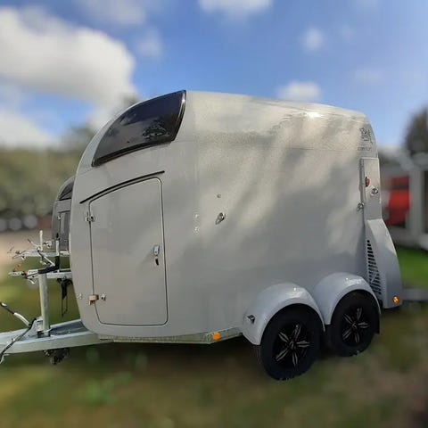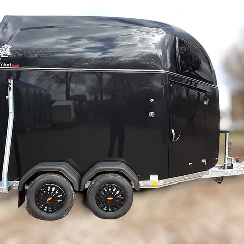 Model: Böckmann Master Antal heste: 2 Highlights: Midterstolpe-skillevæg (svingbar for og bag) med polstring Böckmann Premium aluminium fælge 14" MMS system. Justerbar bomsystem låseknop, som skubbes ind i et beslag Justeres i højden forrest og længden bagerst som kan udløses udefra ved nødsituationer. Ekstra udstyr: Forberedt til videoovervågning Opbygning Indstigningsdør i højre side Enkelthjulsskærme i sort plast Gummibelægning på bagklap med integrerede trinlister og sidestop Nummerpladeholder med 2 trin Løftemekanisme med gastryk-støddæmpere Lysanlæg med baklys og 13-polet stik Åbningsvindue i polyesterkappen Mekanisk påløbsbremse WCF Plus (Hjulophæng, med spiral og støddæmpere) Automatisk næsehjul Aflåselig kuglekobling Indvendigt 2 fodertrug Gummigulv, fuldt påklæbet og forseglet Side sparkeplader Sidepolstring (2 stk.) LED-loftlys Sadelrum: Udtrækkelig sadelholder, vertikalt og horisontalt justerbar Spejl på døren Dørnet Plastskovl med skaft