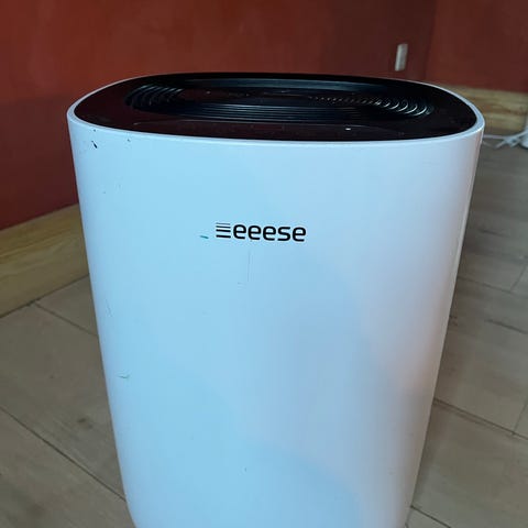 Eeese Emil affugter i hvid. Enheden er beregnet til at reducere luftfugtighed indendørs og kan anvendes i rum som f.eks. stue, soveværelse, kælder eller bryggers. Affugteren tilsluttes med almindelig netledning og har luftindtag på bagsiden. Velegnet til brug i private hjem eller mindre rum, hvor der er behov for at holde luftfugtigheden nede.