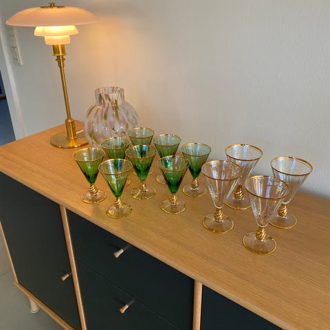 2 lidt større snapsglas/portvin 30kr pr stk