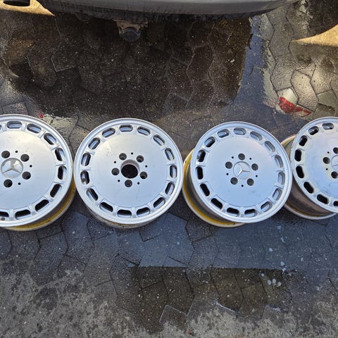 Originale Mercedes Benz 15" alufælge. Monteret med dæk 195/65 15. Har siddet på en C180'er.