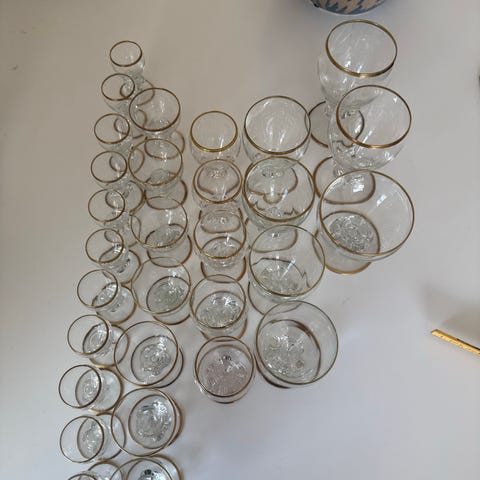 Der er yderligere 6 portvinsglas’s, der er uden guldkamp. De kan følge med