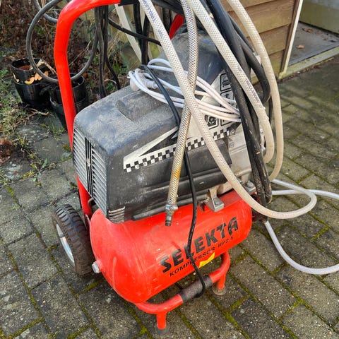 Selekta HP 2.5 kompressor med elmotor på 2,2 kW og maksimal arbejdstryk på 10 bar. Kompressoren er monteret på en vandret tryktank med hjul og håndtag for nem transport. Udstyret med manometre, trykregulering og standard lufttilslutning til f.eks. luftværktøj, oppumpning og andre trykluftsopgaver i værksted eller garage.