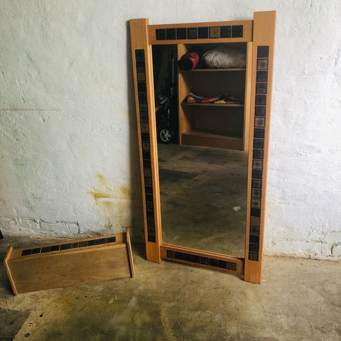 Reteo spejl, knagerække, skoreol og kelimtæppe til entre sælges samlet til 400 kr.