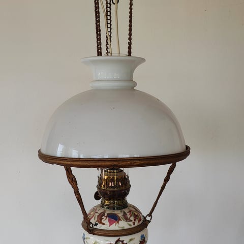 Petroleumslampe, Aluminium /glas, 120 år gl.