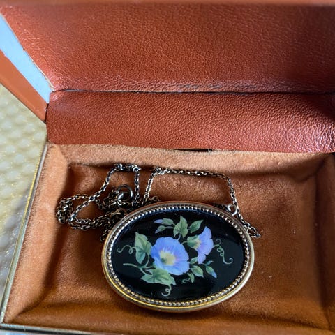 Pietra dura broche i forgyldt messing.