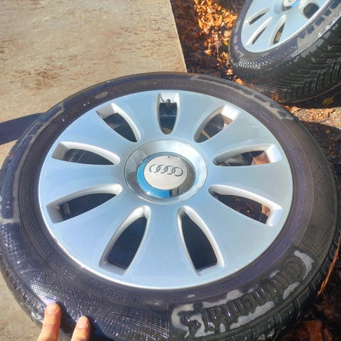 Continental helårs dæk med original 16 tommer Audi fælge. Max kørt 2000km