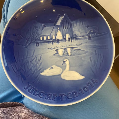 Bing & Grøndahl juleplatte porcelæn blå-hvid