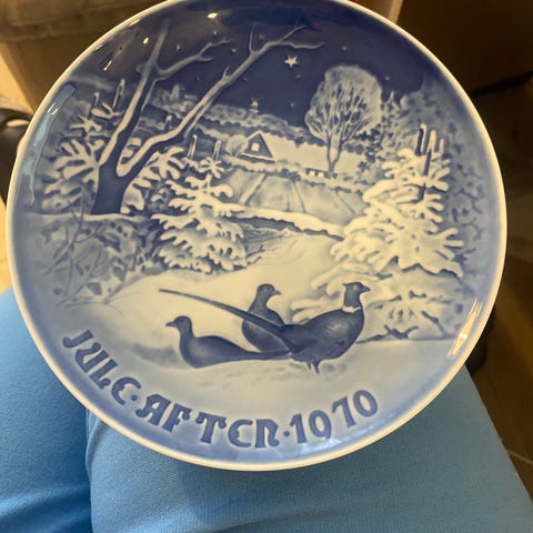 Bing & Grøndahl juleplatte Jul ved den gamle vandmølle 1975 porcelæn blå-hvid