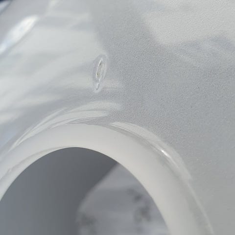 Lampen har en lille repareret ridse i bunden og beskyttelses glas v pæren knækket på hjørne/ se fotos