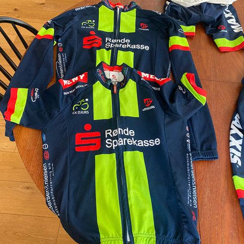 Derudover har jeg rigtig mange cykelttøjer. Både lange ærmer og korte ærmer, vindjakker, ekstra cykelbukser, der er rigtig meget flot cykeltøj.