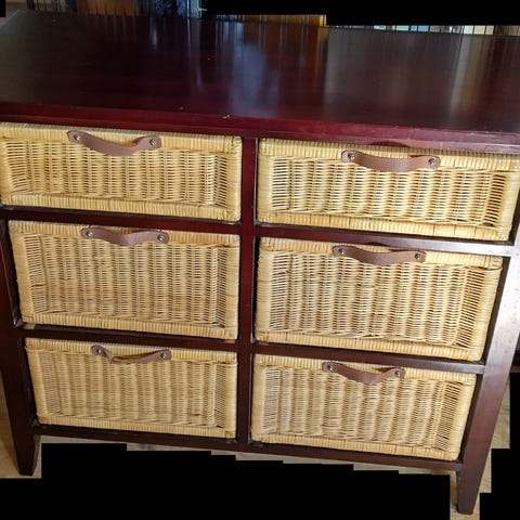 Kommode, b: 77 d: 44 h: 70, 1 stk lille sort kommode med patina, men i god stand, der medfølger ingen nøgler. H:70cm. B:77,5cm. D:44,5cm. Kommode er ikke ny og sælges derfor som brugt, derfor kan der forekomme ridser, slid og skrammer. Prisen er kun 275kr.