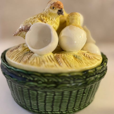 Påskedekoration med ægte udblæste hønseæg med ophæng. Æggene er håndmalede med motiver som blomster, fugle og påskefigurer. De leveres i original æske.