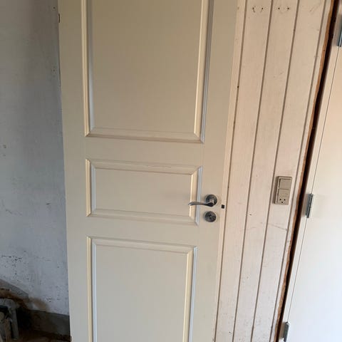 Velegnet som indvendig dør i bolig eller kontor, hvor der ønskes en enkel, hvid dør med traditionelt design.