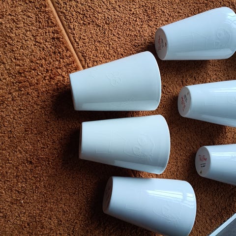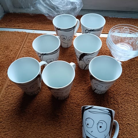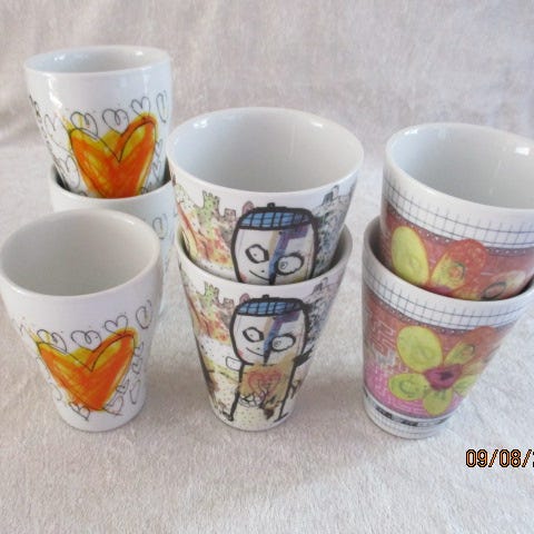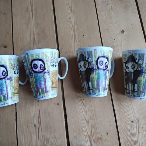 4 næsten ens 12 cm. krus fra Poul Pava - alle er sort / hvide og 100% ok