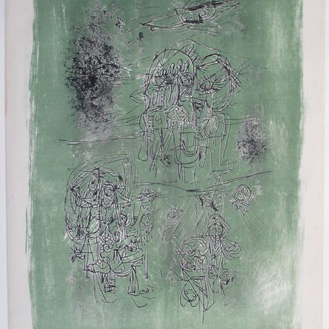 Asger Jorn. Euclide Coincé, farveradering 1971 fra serien Entree de Secours, signeret og nummereret i 100 eksemplarer. Van de Loo 392.