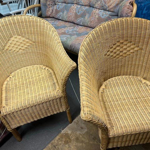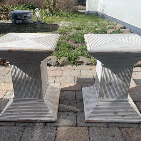 2 fine borde, flettet siv, charmerende, meget rummelige, kan bruges som sofaborde, sengeborde eller blot til fin opbevaring.