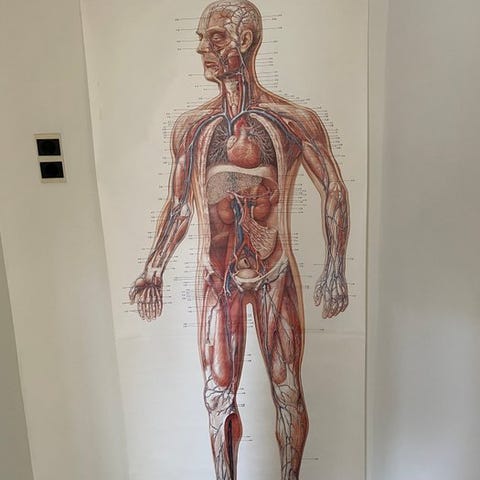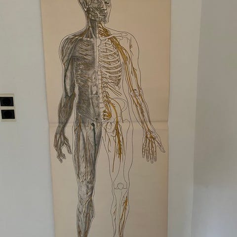 Gammel undervisningsplanche med lymfesystemet. 100x143 cm