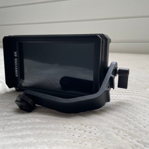 Jeg sælger min 4K Andycine monitor og et tilbehørende Cinerig. Jeg filmer professionelt og synes fordelen med det her kit er, at man kan filme handheld uden ”micro-jitters” og samtidig være hurtig og fleksibel, fordi den er let.