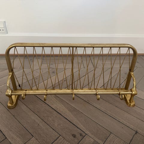 Eksklusiv fransk messing hattehylde fra 1950'erne med glashylde