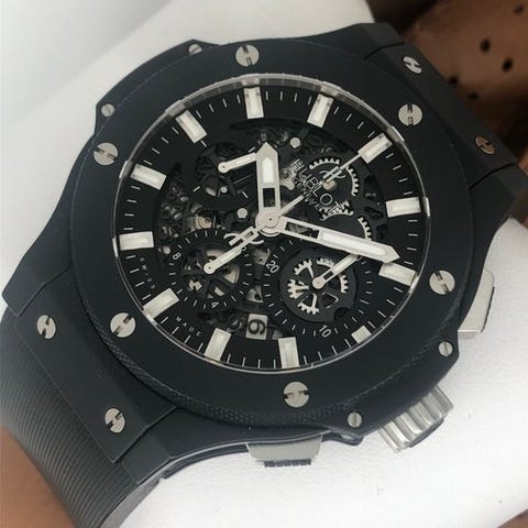 Uret har kronograf, dato og safirglas samt Hublots velkendte “One Click”-system, som gør det nemt at skifte rem.