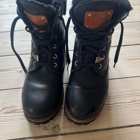 Chelsea-støvler fra mærket Panama Jack, model Giordana Igloo Travelling - støvlen har vandafvisende sorte læder og indeni en varm foring af lammeuld.
