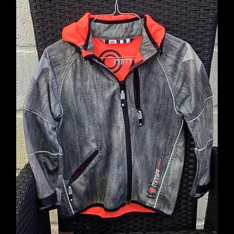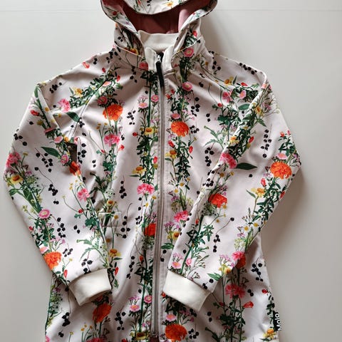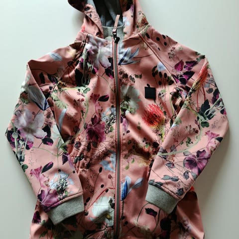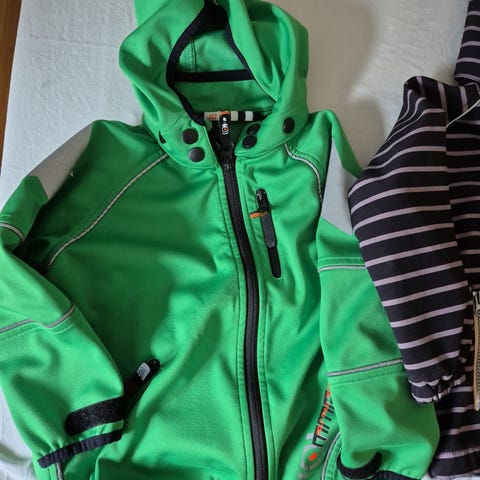 Fin softshell jakke i dejlig lang model der går ned over bagdelen. Kan have lidt skygger på ærmekanter og kanten i nakken, som er avlet at undgå på denne model. Ellers flot stand.
