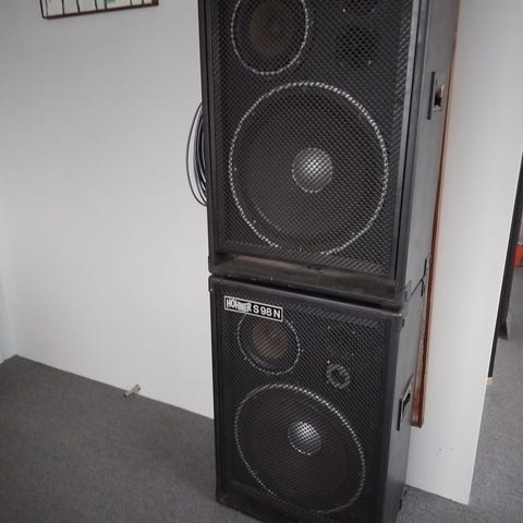 VOX PA 120 amp m. fjeder reverb inkl 2 højttalere af ukendt mærke (gætter på Fane 15" + 1"- har forøvrigt standard pole mounts i bunden) inkl kabler, pot.-metrene knaser lidt og vil have godt af et sprøjt kontaktrens, spiller fint og meget HØJT !, kan høres ved fremmøde, sendes ikke, samlet pris for det hele : 700,-