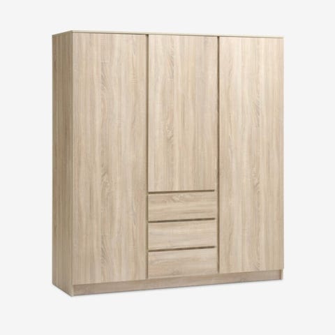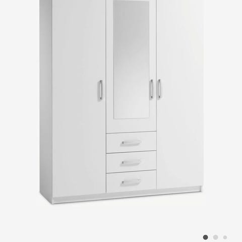 Garderobeskab FANDRUP 97x176 2 låger 3 skuffer hvid . Artificial veneer. Cabinet interior: 3 shelves and 1 clothes rail. W97 x H176 x D50 cm
