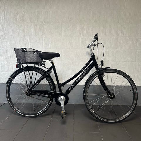 Rigtig damecykel med låsbar cykelkurv i flet.