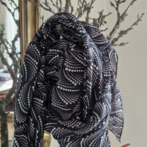 Khaki grønt mindre tørklæde hvid stribekant og hvide prikker - bandana style fra attitude Matters