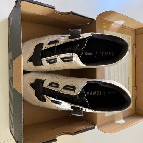 Fizik Terra Atlas cykelsko i størrelse 43. Skoene er designet til klikpedaler med to-bolts klampe (SPD-type) og har en kraftig, mønstret sål egnet til terræn- og gravelkørsel. Overdelen er i armygrøn syntetisk materiale med ventilationshuller og forstærkede områder ved tå og hæl. Lukningen består af drejespænde og justerbare stropper for præcis pasform. Indersålen er polstret for komfort ved længere ture. Velegnet til mountainbike, gravel og pendling med klikpedaler. Klamper er monteret. Kvalitets-sko til skarp pris. På tilbud til 1049,- i øjeblikket. Min pris kun 800,- kr.