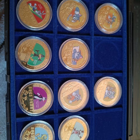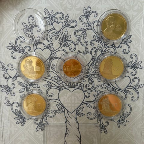 Mønterne er guldbelagte samlermedaljer (ikke massivt guld).