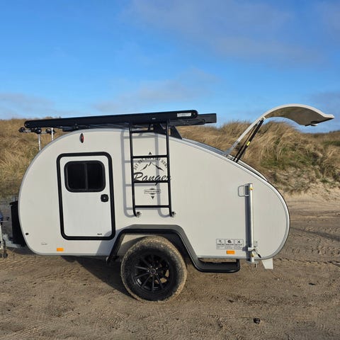 Vi har haft stor glæde af denne vogn med tagtelt. Det er ikke helt en campingvogn, men totalvægten er under 500 kg, den er dejlig let at køre med, fylder ikke mere end en havetrailer, og du kan sove 2 personer på en god stor madras 120 x 200 cm. Det er også godt for benzinøkonomien, og kan trækkes af også små elbiler.
