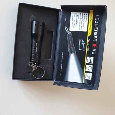 Lommelygte i grøn metal med LED-lys. Kompakt model, egnet til hverdagsbrug, tasken eller bilen. Drejegreb med mønstret overflade for bedre greb. Bruger batterier (type ikke oplyst). Velegnet til brug både indendørs og udendørs, fx ved camping, gåture eller som reserve-lys.pris 50 kr