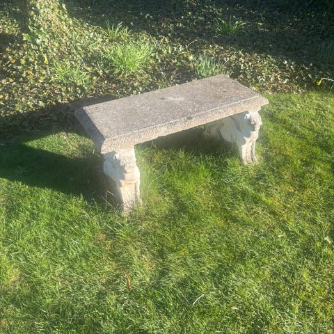 1 stk. hvid knust marmor havebænk incl. de 2 sten, der ses på foto. Befinder sig i Rønbjeg lidt udenfor 7800 Skive, og den sendes eller leveres ikke.