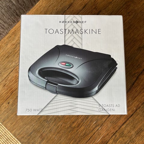 Emerio toastmaskine i sort. En kompakt elektrisk toastmaskine velegnet til tilberedning af varme toast og sandwiches. Enheden har håndtag for nem åbning og lukning samt indikatorlys på toppen, der viser opvarmningsstatus. Kabinettet er i sort plast, og maskinen er egnet til brug i køkkenet til hurtig tilberedning af mindre måltider og snacks.