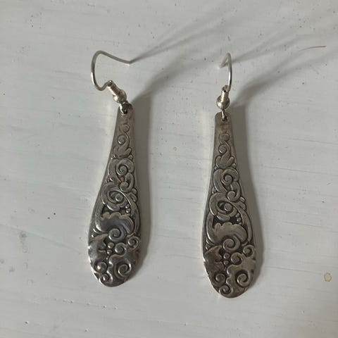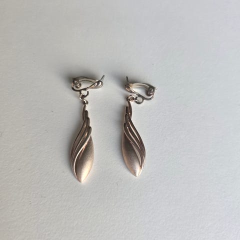 Selve vedhænget er 4 cm langt, hængelængde 5,5 cm. De vejer ca 7,4 gram. Kan bruge lidt mere pudsning.