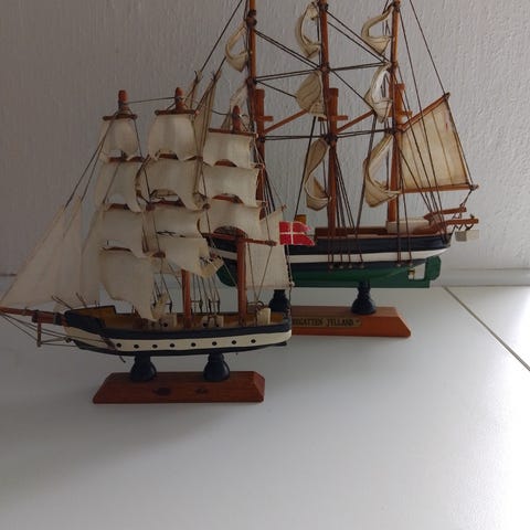 Vejledningen er der til dem begge to. Men desværre ikke I original emballage. 500kr. Pr. Stk. Krigsskibet er ca. 76 cm og den originale kasse følger med og koster 350kr. Sender gerne. Og skilles ad efter ønske