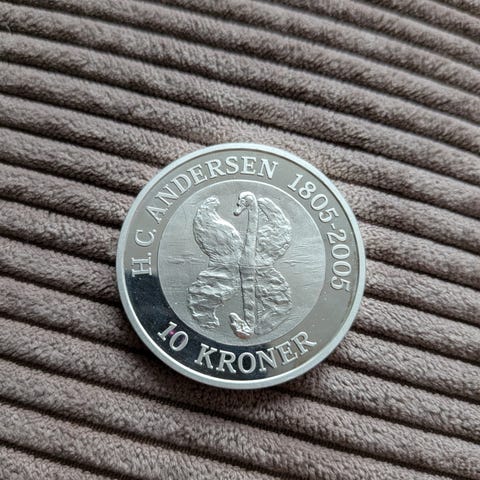 Denne 10-kronemønt, præget på Den Kgl. Mønt, er udgivet i anled-ning af 200-året for H. C. Andersens fødsel 2. april 1805.