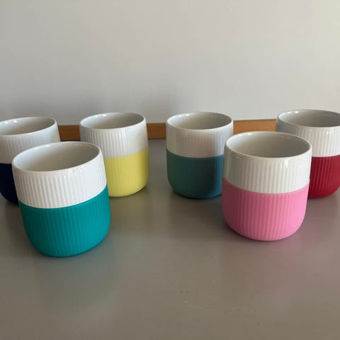 Sælger 4 stk Royal Copenhagen contrast krus i farven skovgrøn (tror jeg). Det kan tælles på 1 hånd hvor mange gange de er brugt, så der er ingen brugstegn. De har stået opbevaret de sidste mange år.