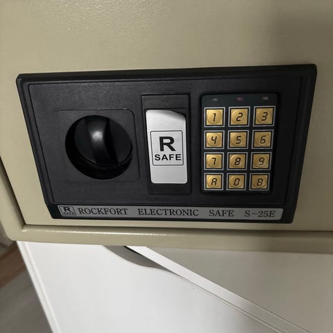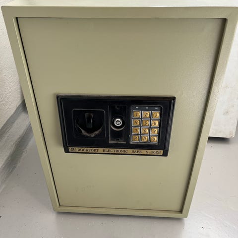Rockfort værdiskab med elektronisk kodelås i sort metal. Skabet har frontbetjent tastatur til indtastning af kode samt nøglelås som ekstra adgangsmulighed. Indvendigt er der to rum til opbevaring af kontanter, smykker eller andre værdigenstande. Bagsiden har forborede huller, som giver mulighed for montering på væg eller anden fast overflade. Der medfølger dog ingen skruer. Velegnet til brug i hjemmet eller på kontoret til sikker opbevaring af mindre genstande. Størrelse: 35 x 25 x 25 cm. Vægt: ca 7 kg