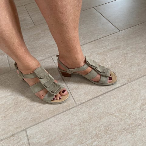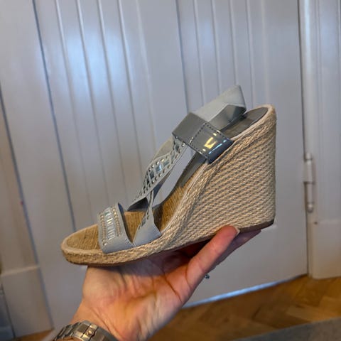 Tamaris sandaler i str. 39. Sandalerne er i en beige nuance med dekoreret rem over forfoden. De har en let, lys sål og en enkel rem omkring hælen. Velegnet som hverdagssandal i sommerhalvåret.