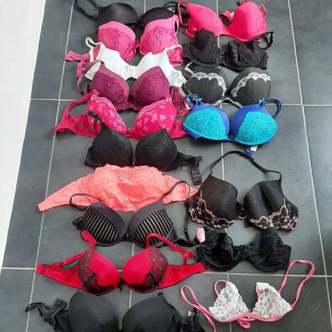 H&M undertøjssæt til kvinder i multifarvet bomuld, primært str. 70 C. Sættet består af forskellige bh’er og natkjoler i flere farver og mønstre. Materialet er primært bomuld, som giver en blød og behagelig fornemmelse mod huden. Velegnet til hverdagsbrug og som nat- eller loungetøj. 18 bh’er - der er underdele til 9 af dem 🙂